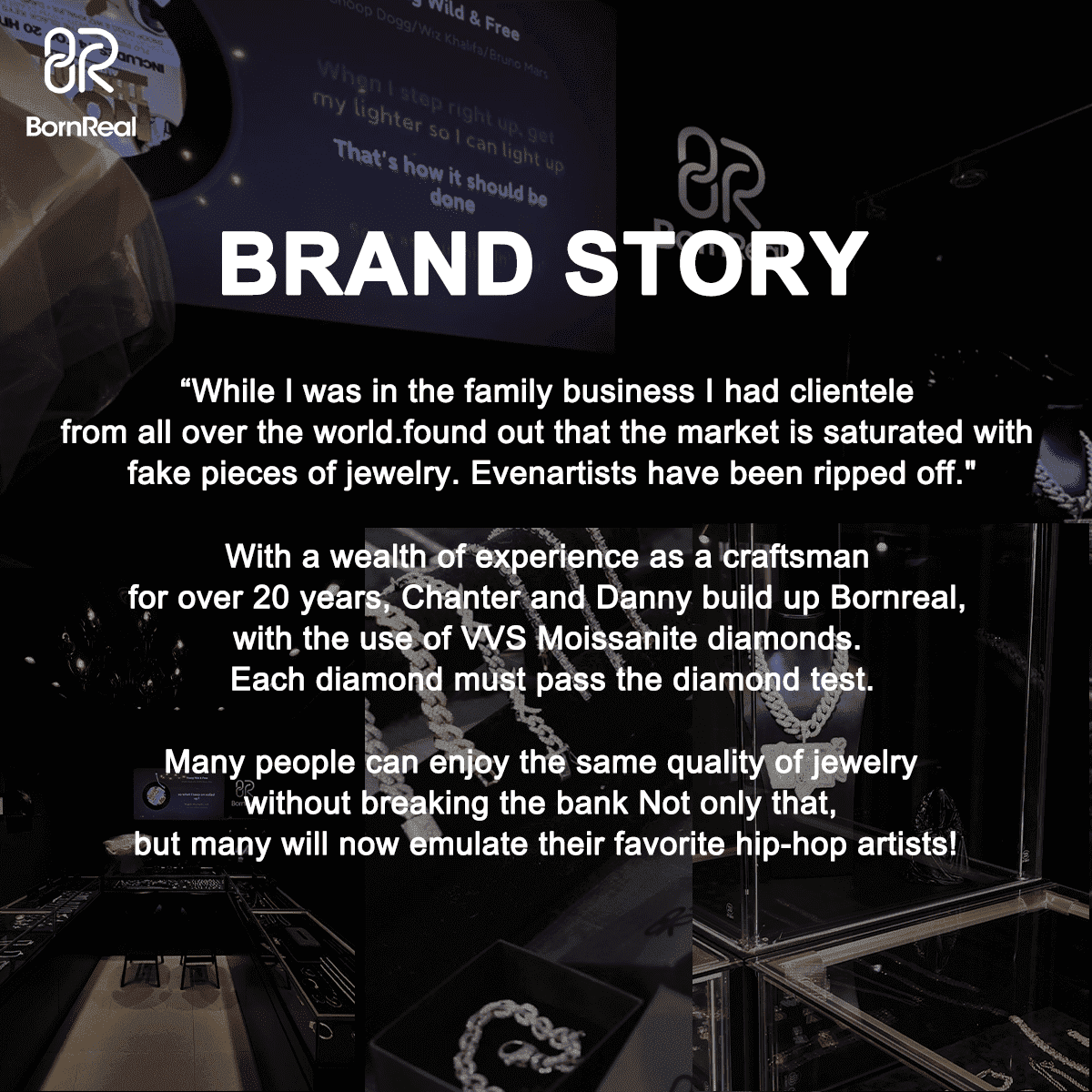In recent years, a lot of celebrities posted videos on YouTube saying they bought expensive but fake jewelry that didn't even pass the diamond test, which made me angry! Being in the industry for 21 years, I know high quality jewelry could also be affordable, so I determined to set up my own brand, to let hip-hop lovers around the world know that everyone can afford high-quality jewelry, and everyone deserves unique jewelry designs!
