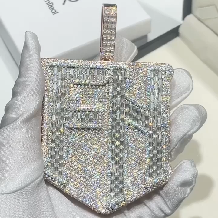 Custom Baguette Mix Moissanite Chain Hip Hop Logo Pendant For Men($50 is for design only, actual price to be determined after design drawings come out)