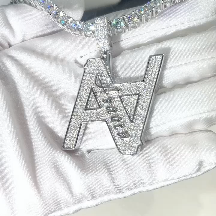 Custom Hip Hop Initial Double A Chain Moissanite diamond Logo Pendant For Men($50 is for design only, actual price to be determined after design drawings come out)