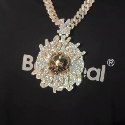 Custom Moissanite 3D Rose Gold Bling Round Hip Hop Logo Pendant($50 is for design only, actual price to be determined after design drawings come out)