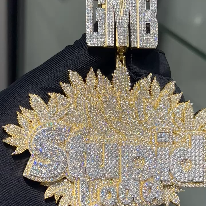 Custom Moissanite 925 Silver Iced Diamond Hip Hop Chain Logo Pendant($50 is for design only, actual price to be determined after design drawings come out)