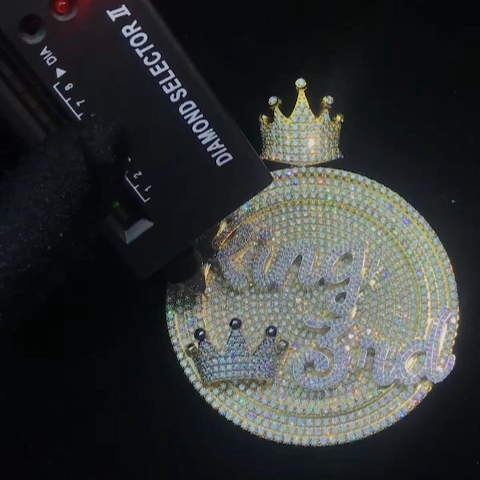 Custom Moissanite Gold Crown Round Hip Hop Logo Pendant($50 is for design only, actual price to be determined after design drawings come out)