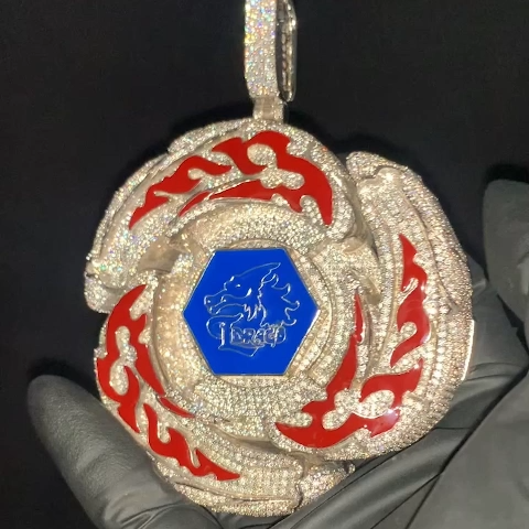 Custom Moissanite Hip Hop Enamel Chain Gyro Logo Pendant($50 is for design only, actual price to be determined after design drawings come out)