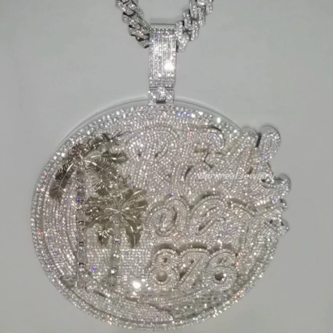 Custom Moissanite Hip Hop Round Money White Gold Diamond Logo Pendant($50 is for design only, actual price to be determined after design drawings come out)