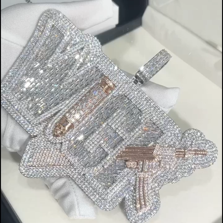 Custom VVS Moissanite Baguette Diamond Iced Hip Hop Rapper Name Pendant($50 is for design only, actual price to be determined after design drawings come out)