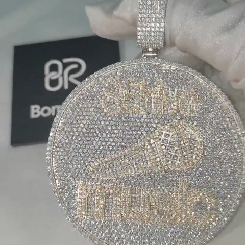 Custom VVS Moissanite Hip Hop Iced Out Chain Bling Logo Pendant For Men($50 is for design only, actual price to be determined after design drawings come out)