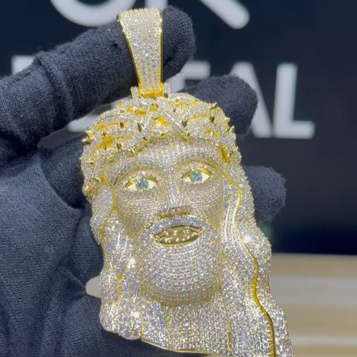 Custom VVS Moissanite Yellow Gold 3D Diamond Jesus Pendant($50 is for design only, actual price to be determined after design drawings come out)